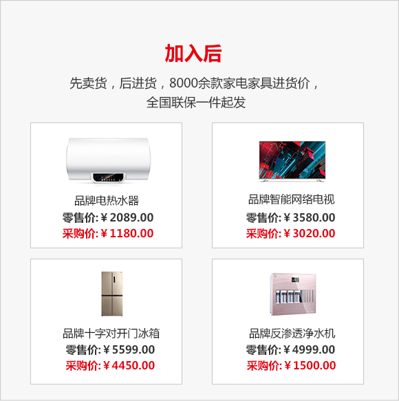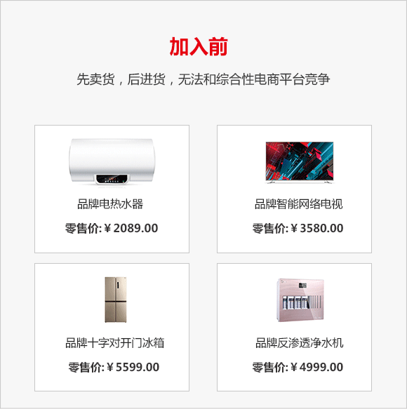 众所周知,做家电实体生意不仅需要资金量大、仓储成本高,单店可供售卖的家电机型也十分有限,而使用找家电网的智能零售终端机、智能零售手机端,智能零售平板机和智能零售电脑端。不占位置,无需进货,无需摆样,即可实现零成本零库存销售全品牌全品类的家电家居商品。
