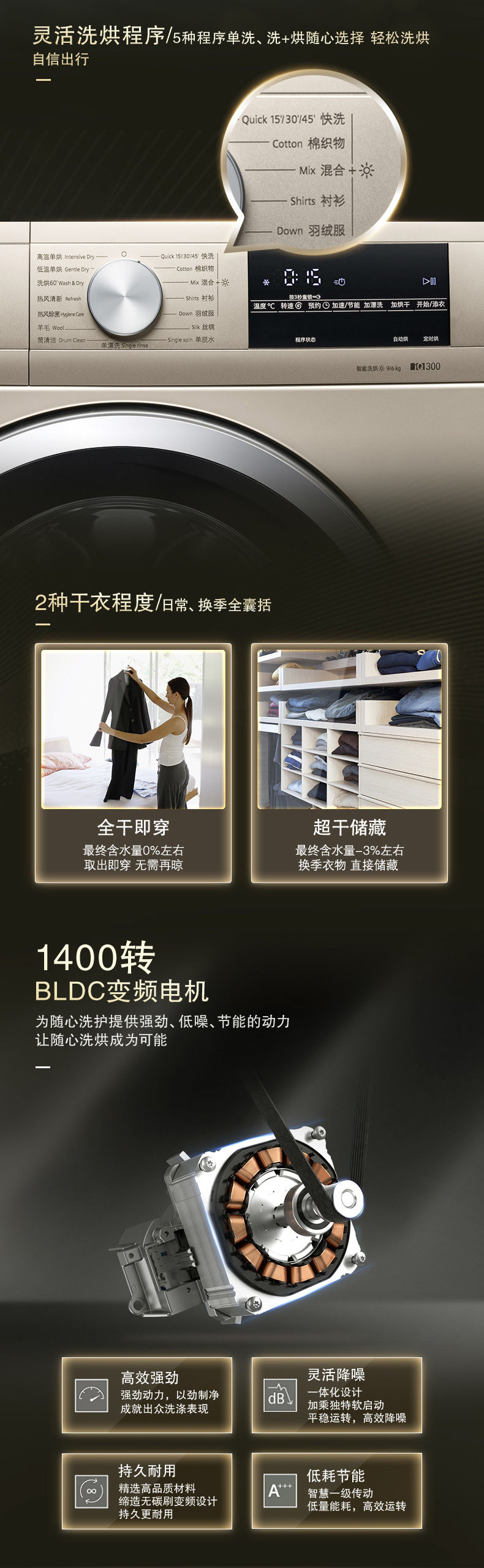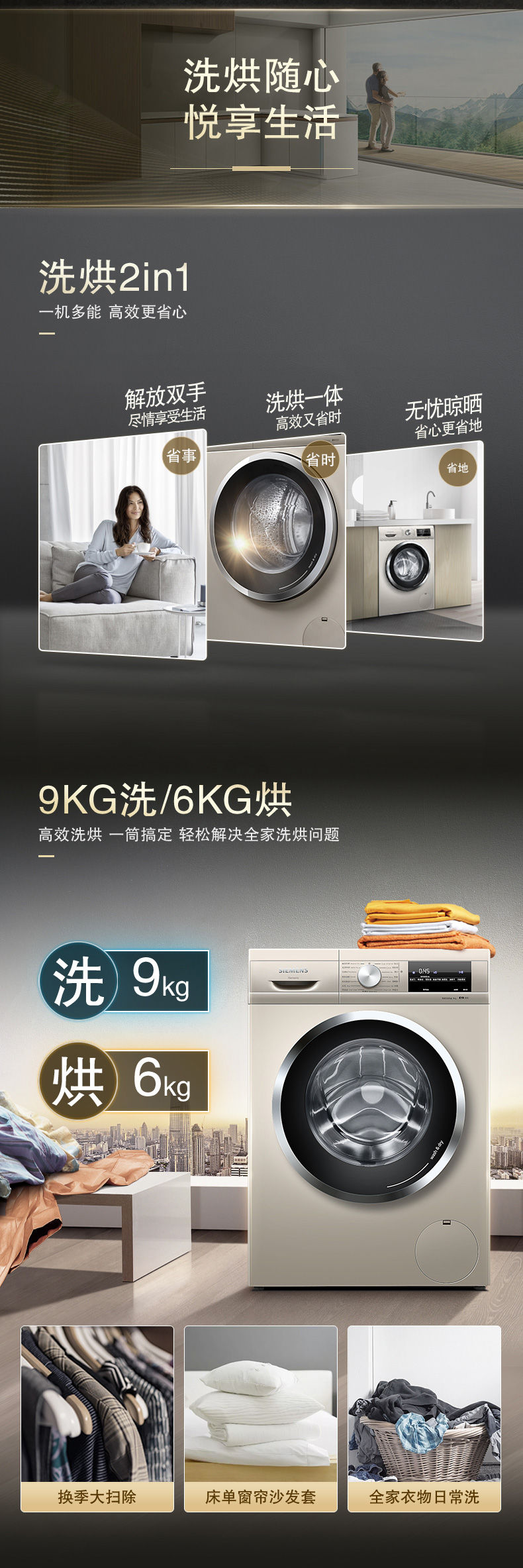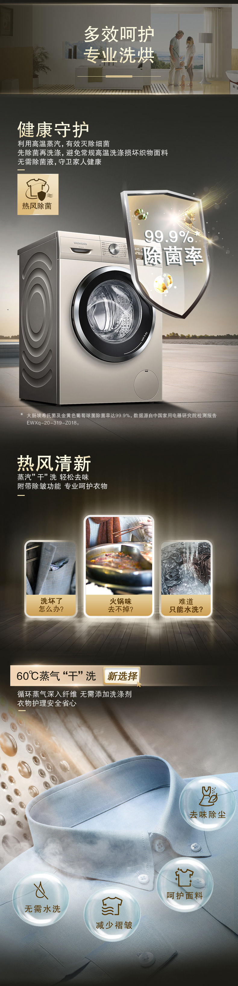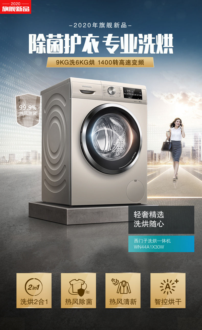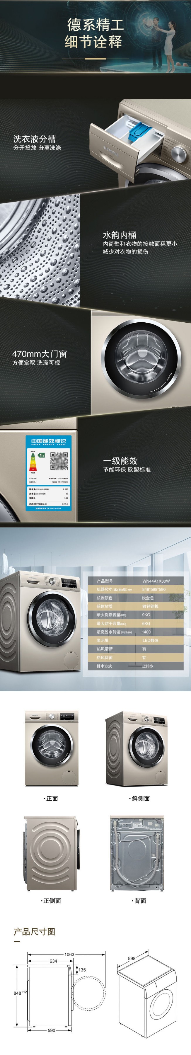 西门子洗衣机WN44A1X30W 洗烘一体机新9kg公斤变频全自动家用滚筒 一级能效