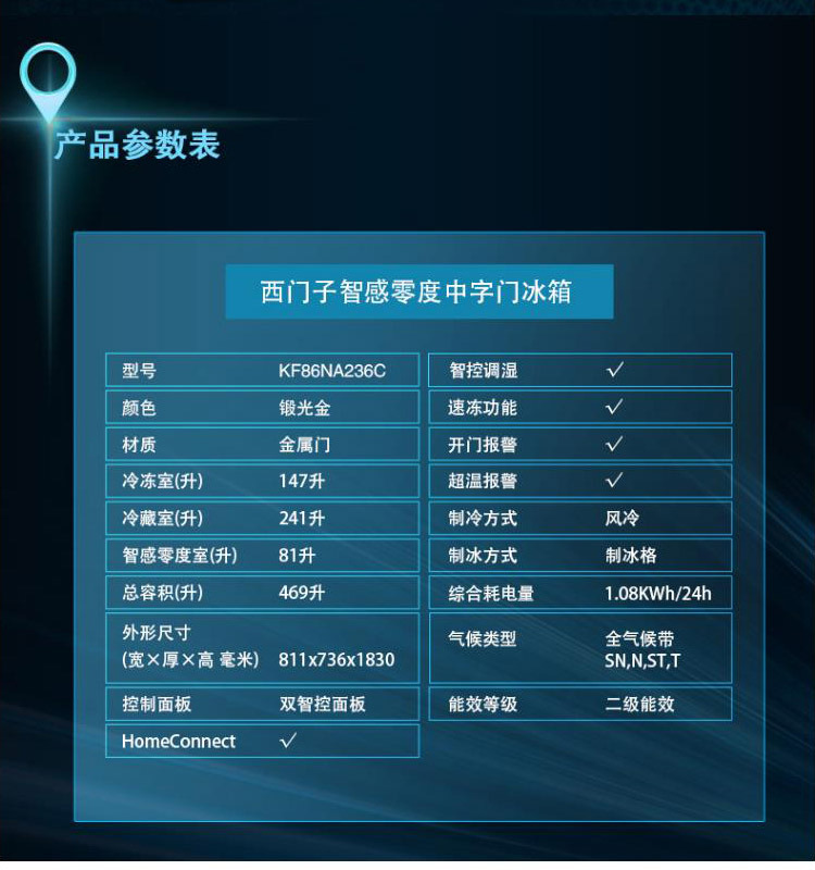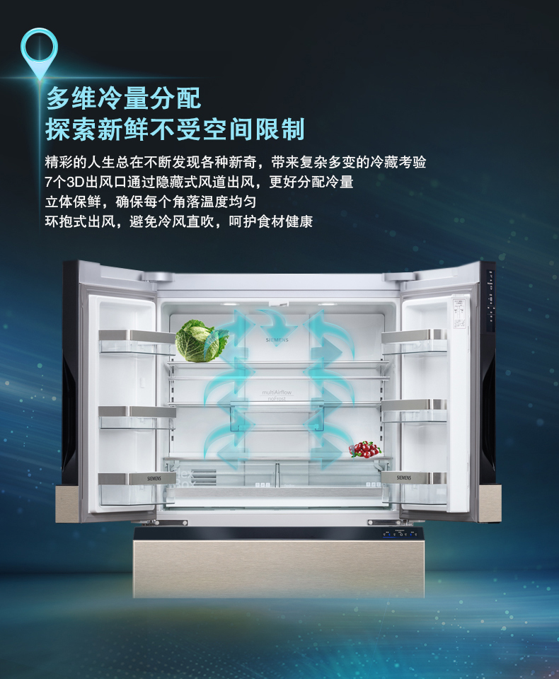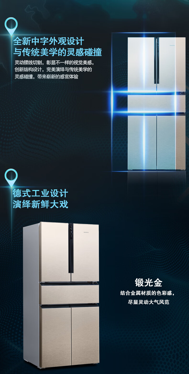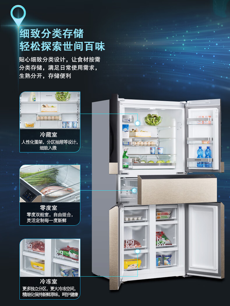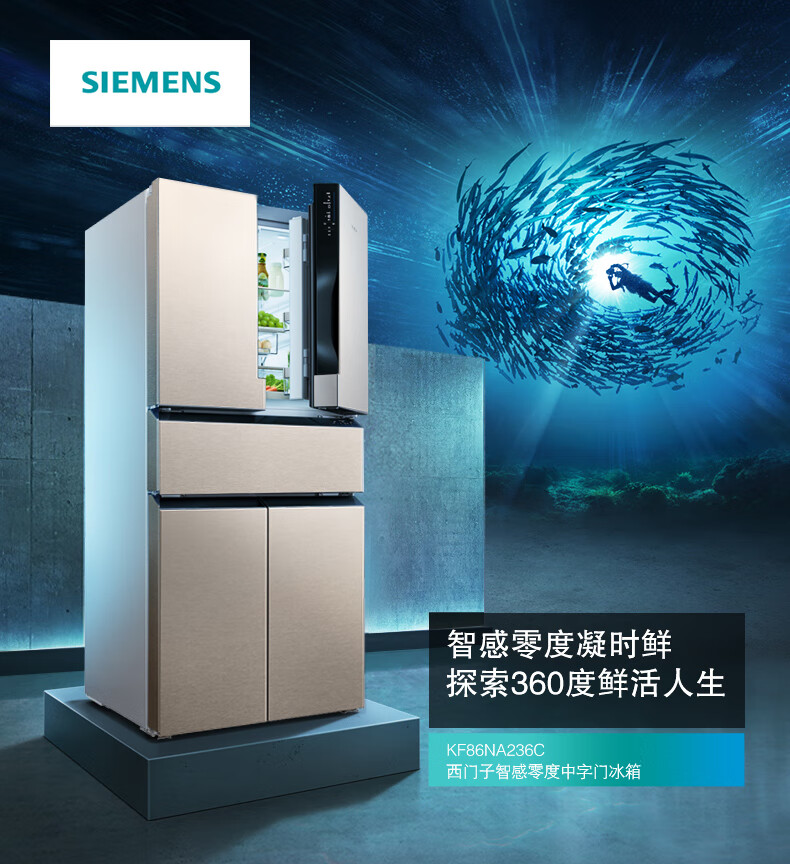 西门子 469升 法式多门冰箱 智能互联 零度保鲜冰箱 KF86NA236C(部分区域可发货)