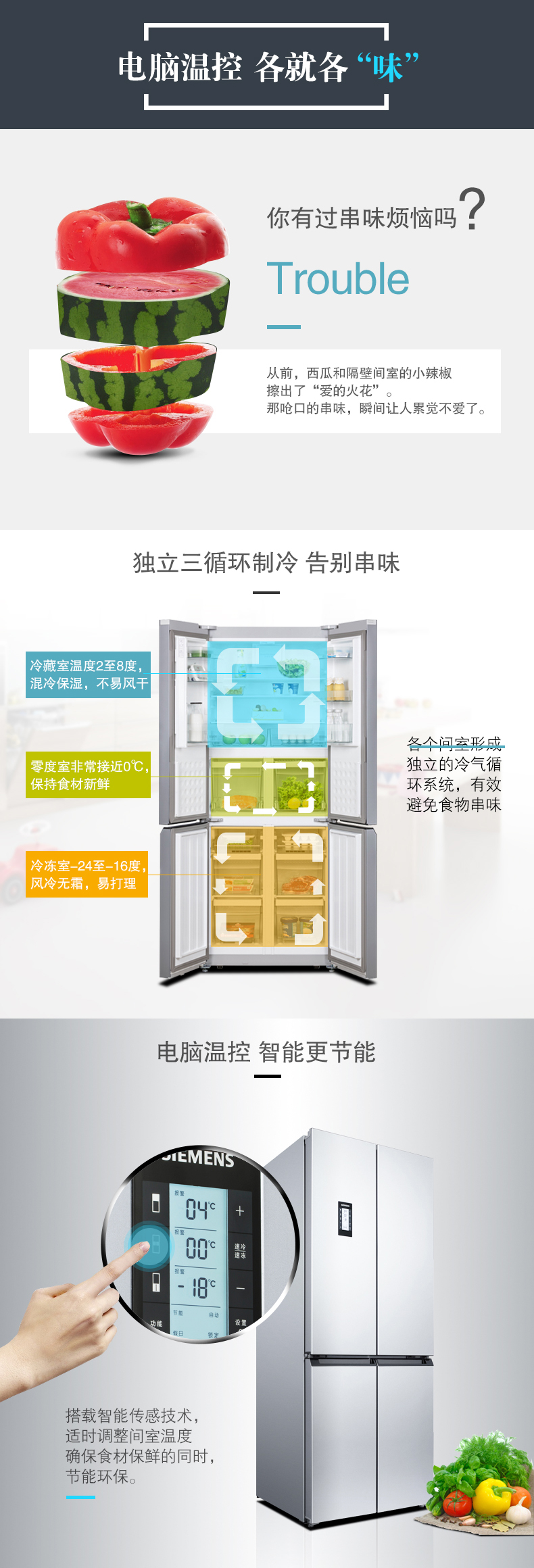 西门子(SIEMENS)KM46FA90TI 452升变频混冷十字多门对开门冰箱零度保鲜
