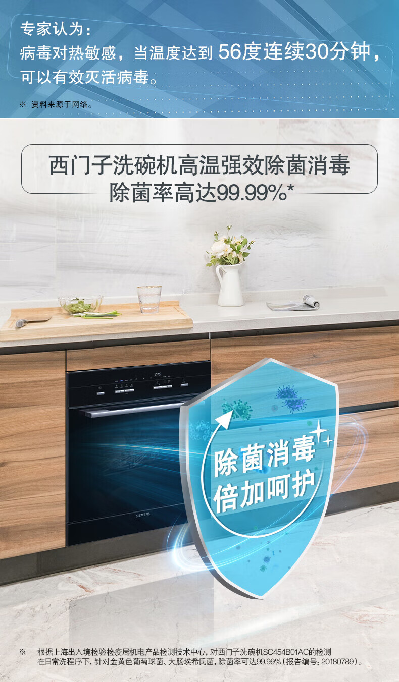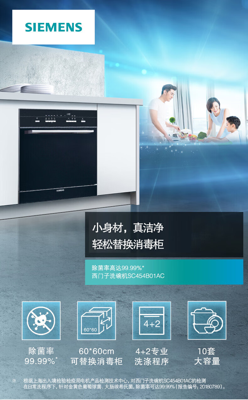 西门子(SIEMENS)洗碗机进口嵌入式家用智能全自动除菌一体10套洗碗机 SC454B01AC