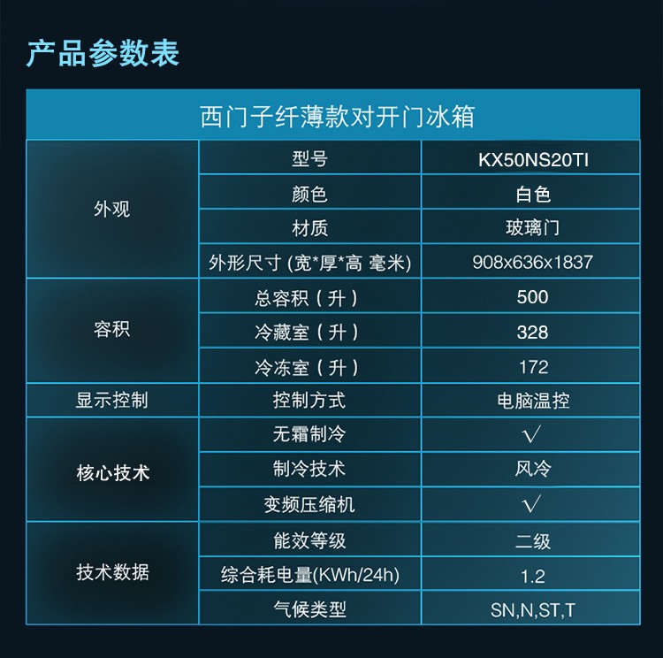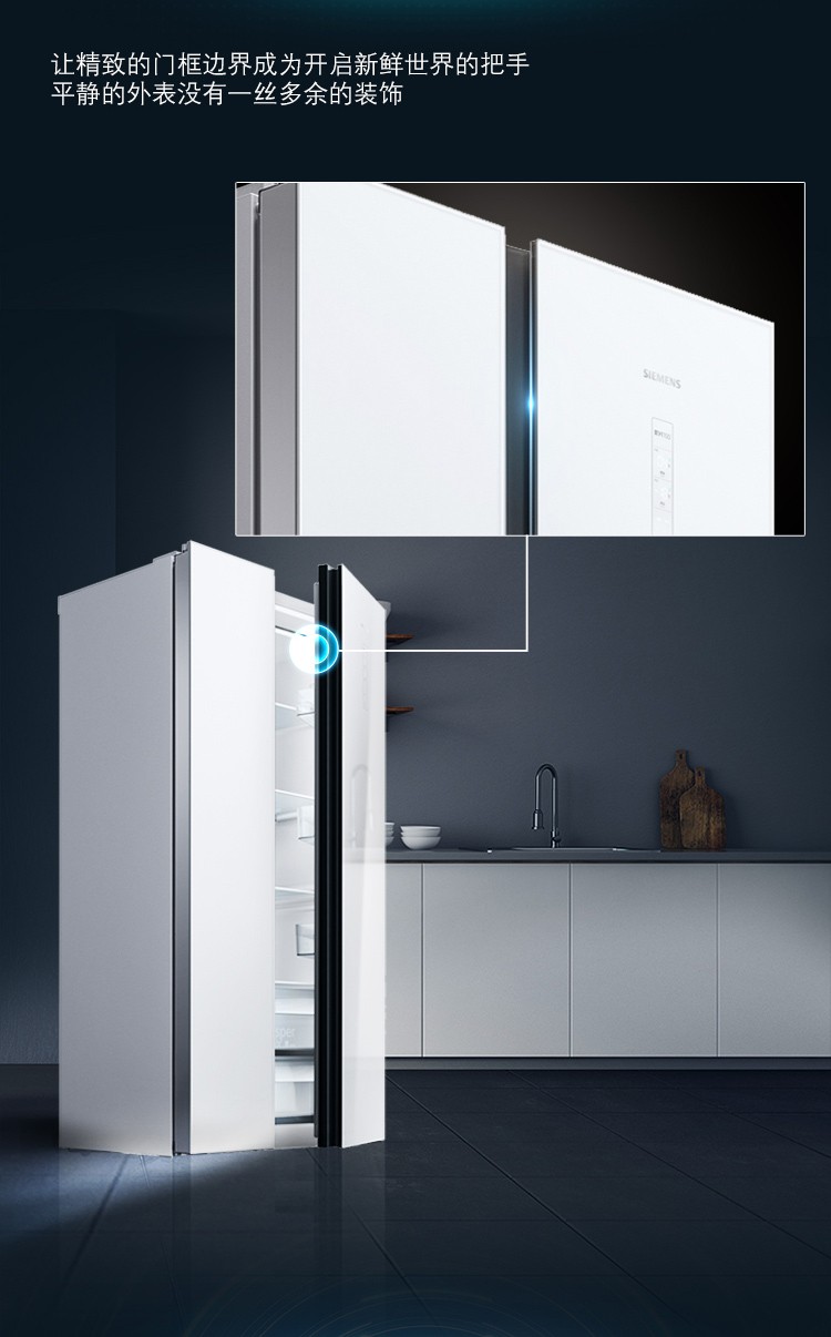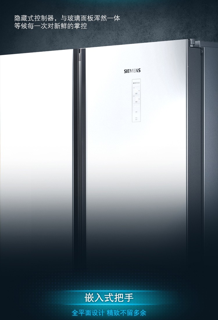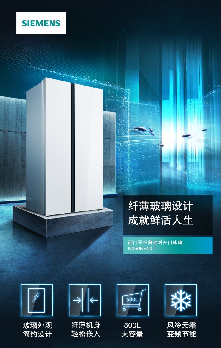 西门子(SIEMENS)500升对开门变频冰箱大容量家用 超薄机身玻璃面板纤薄款KX50NS20TI