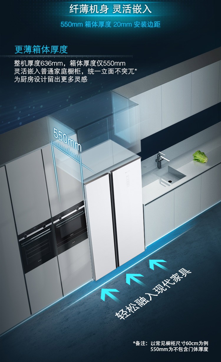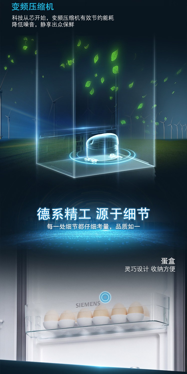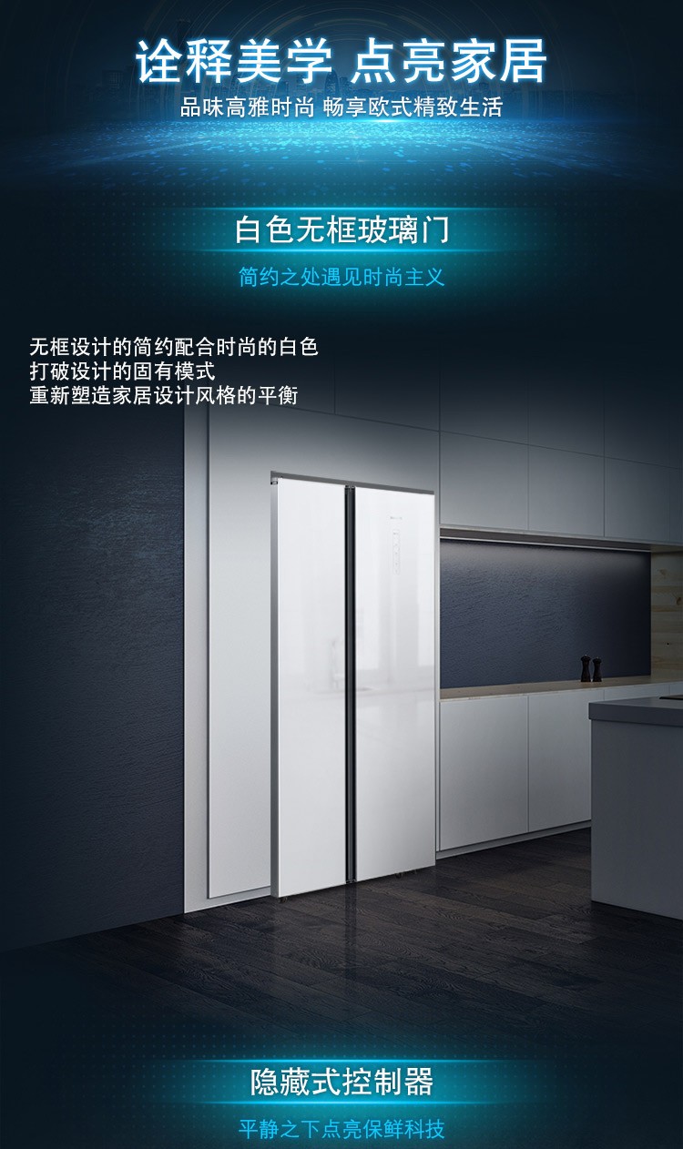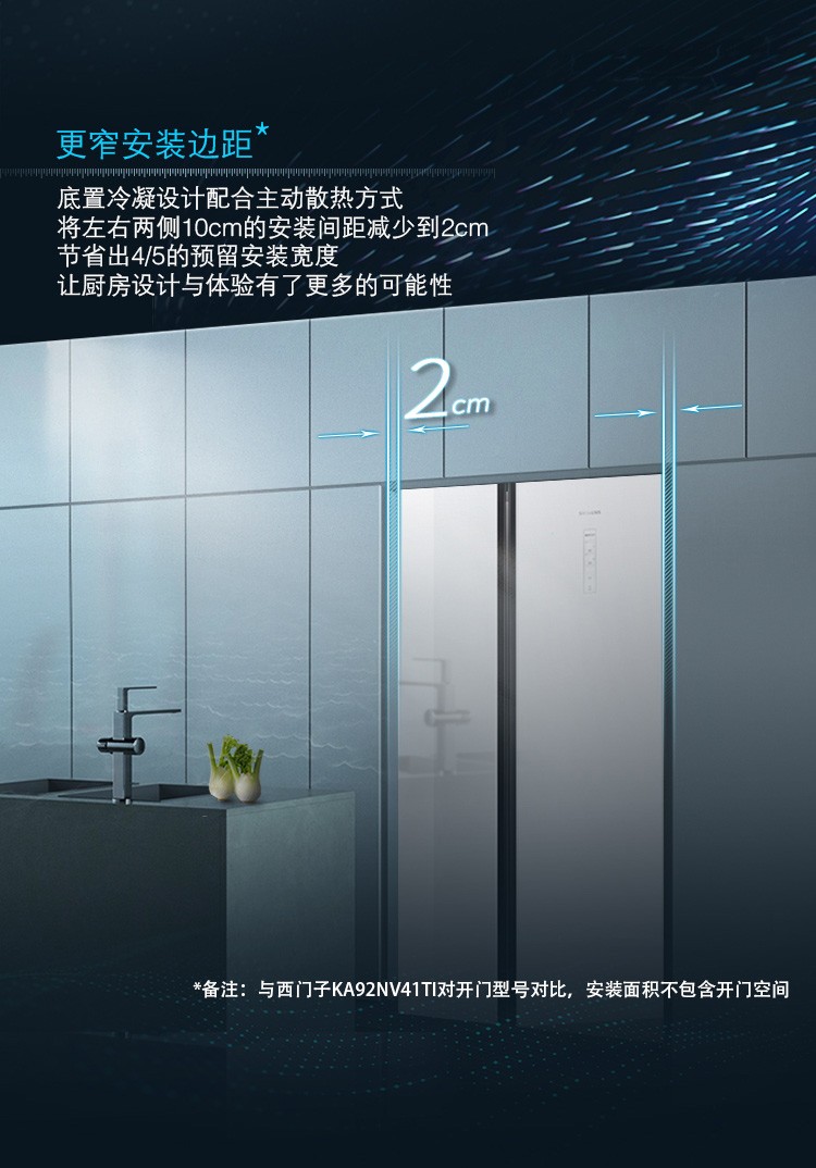 西门子(SIEMENS)500升对开门变频冰箱大容量家用 超薄机身玻璃面板纤薄款KX50NS20TI