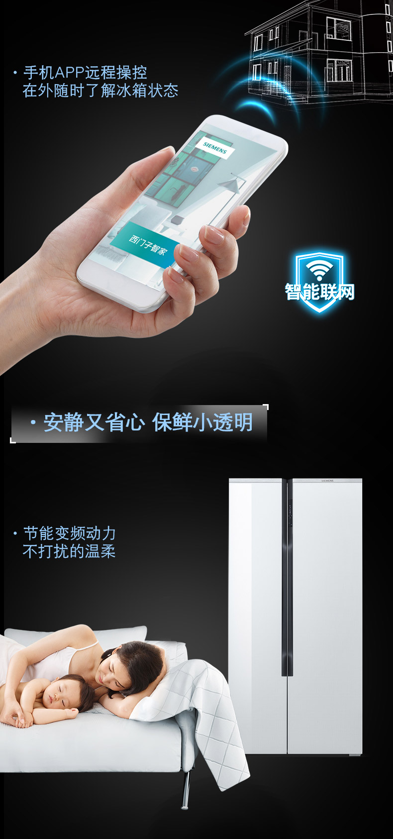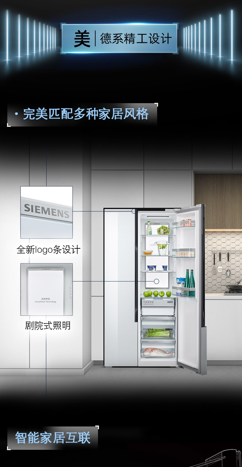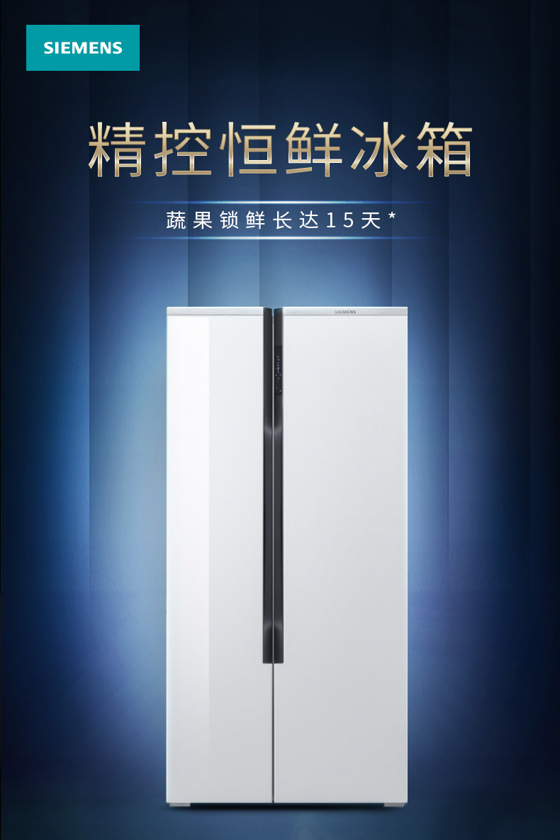 西门子(SIEMENS) 对开门冰箱双开门630升变频风冷无霜智能WIFI家居互联 长效保鲜 独立双循环KA98NVA22C