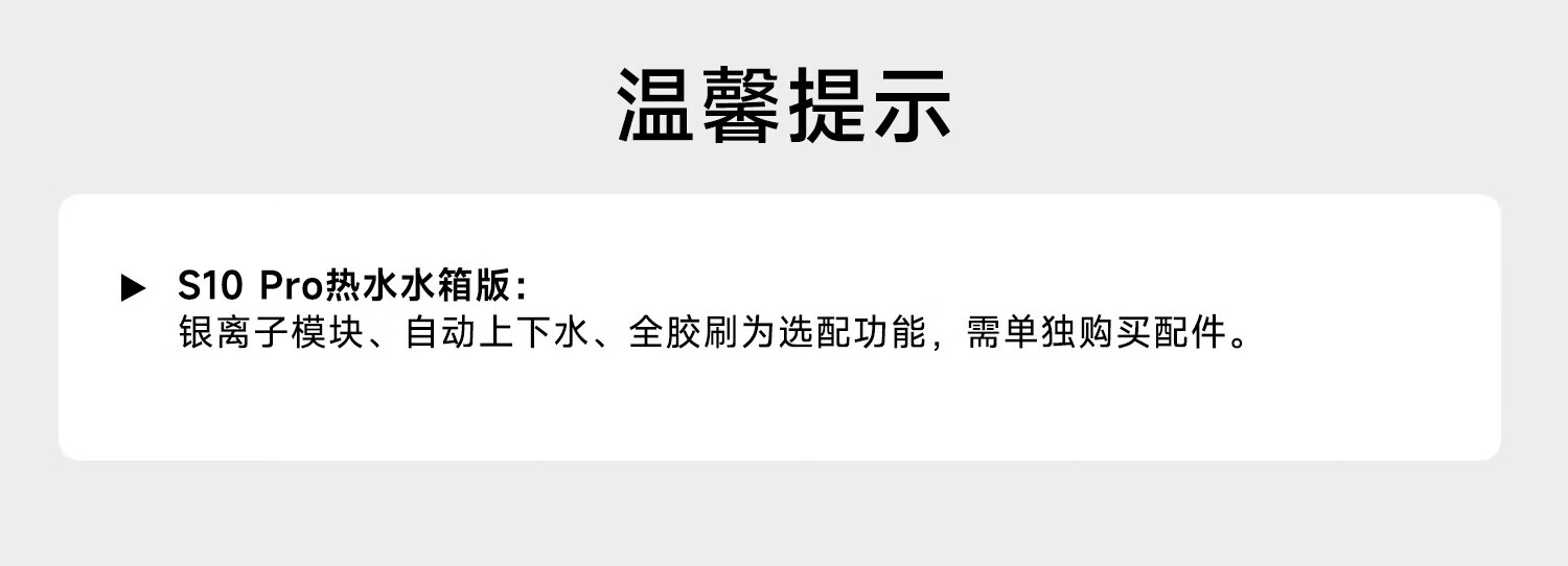 ["S10Pro热水版 水箱版|2164","S10Pro热水版 上下水版|2628"]